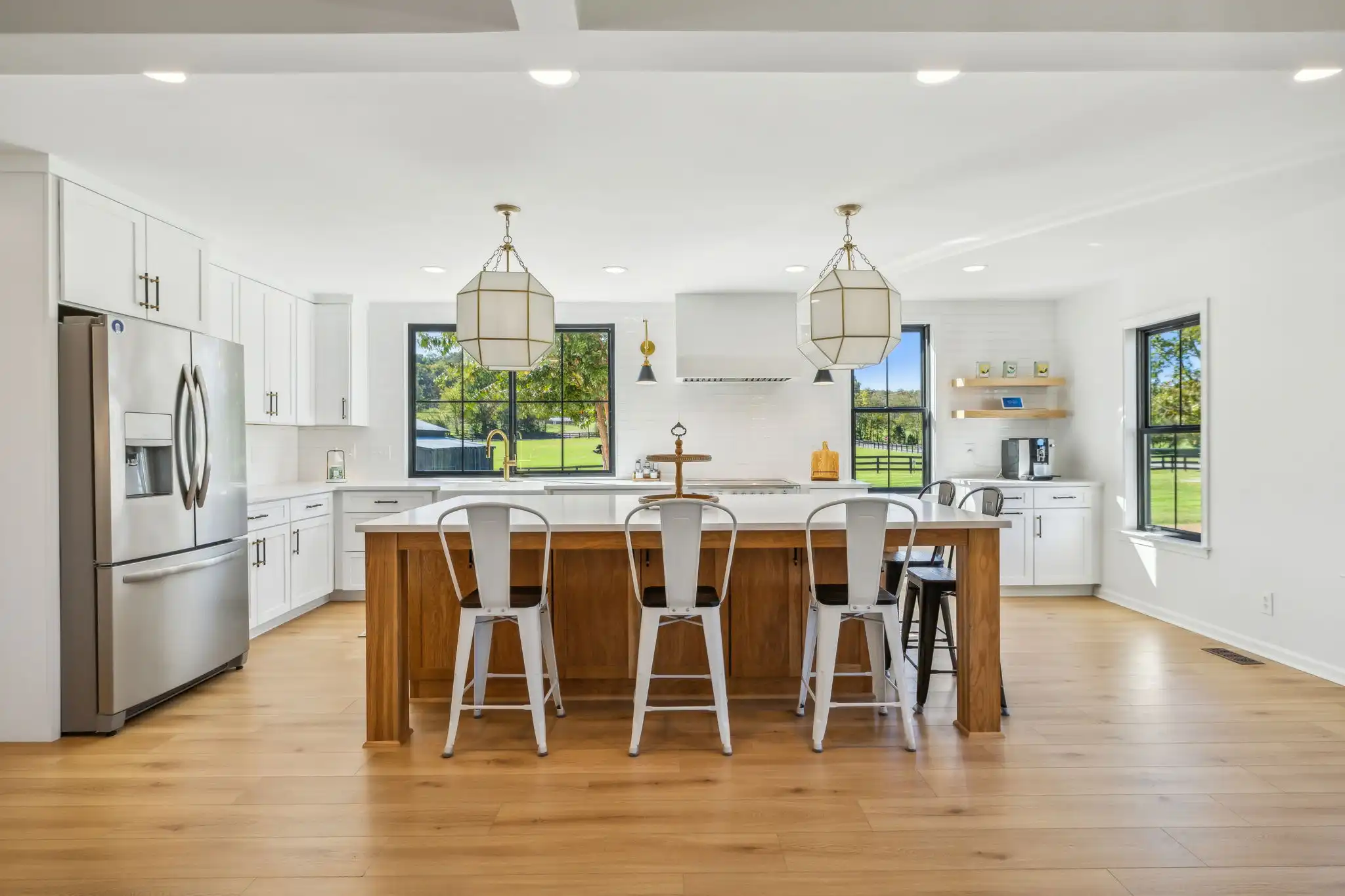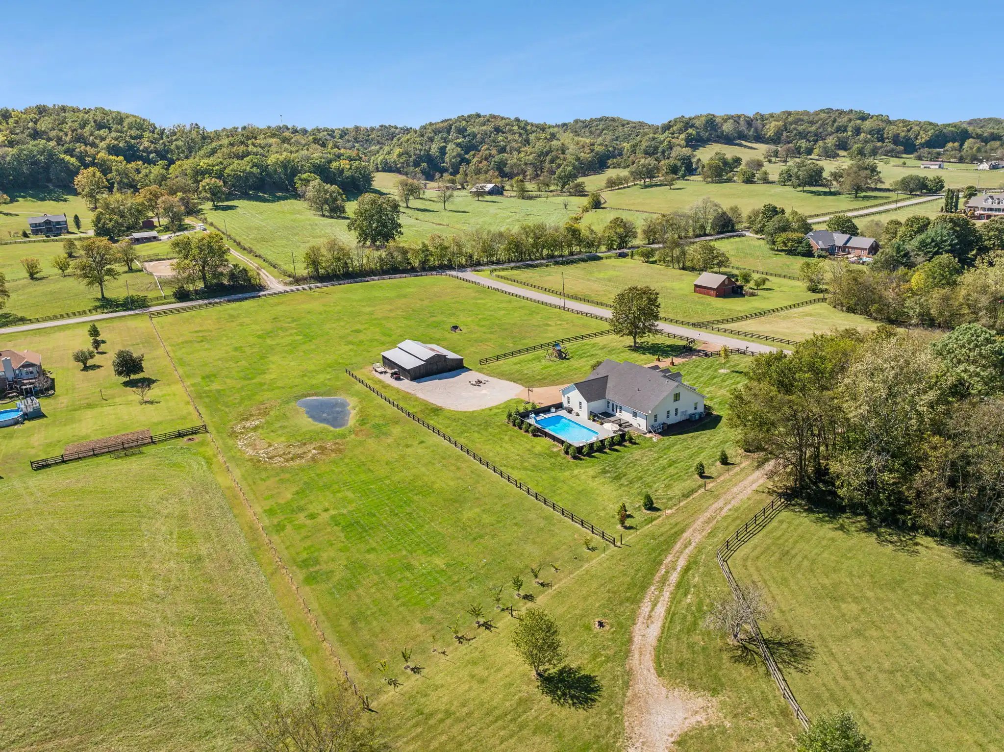 Situated on over 5 acres; this one-of a-kind, renovated farmhouse has it all! Your very own heated in-ground pool, barn with stalls/tack room, usable pasture & even a seasonal pond! There are two additional rooms on the main level that could be used as the 4th and 5th bedrooms. They both have closets and access to a full bathroom. Walking in from the covered front porch; you are greeted w/ a vast open floor plan with exquisite views from every window.